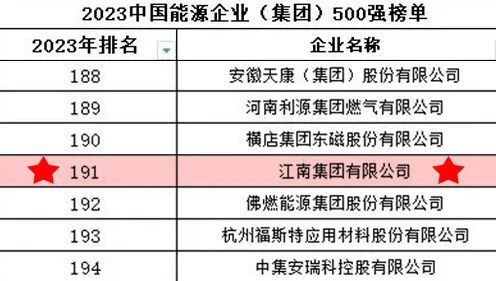 近日,中国能源经济研究院公布2023中国能源企业(集团)500强榜单。江南集团榜上有名!“中国能源企业(集团)500强”采用国际通用评价方式,以能源集团上一年度营业收入为评价标准。数据显示,该榜单中的“500强”营收总额稳步提…