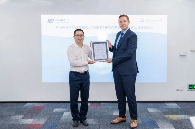 8月15日,万马高分子顺利通过国际独立第三方检测、检验和认证机构德国莱茵TV权威认证,获颁莱茵TV全球首张硅烷自交联免辐照光伏电缆用电缆料技术认证证书。万马高分子常务副总经理王国海、低烟无卤事业部总经理齐兴国携市场和技…