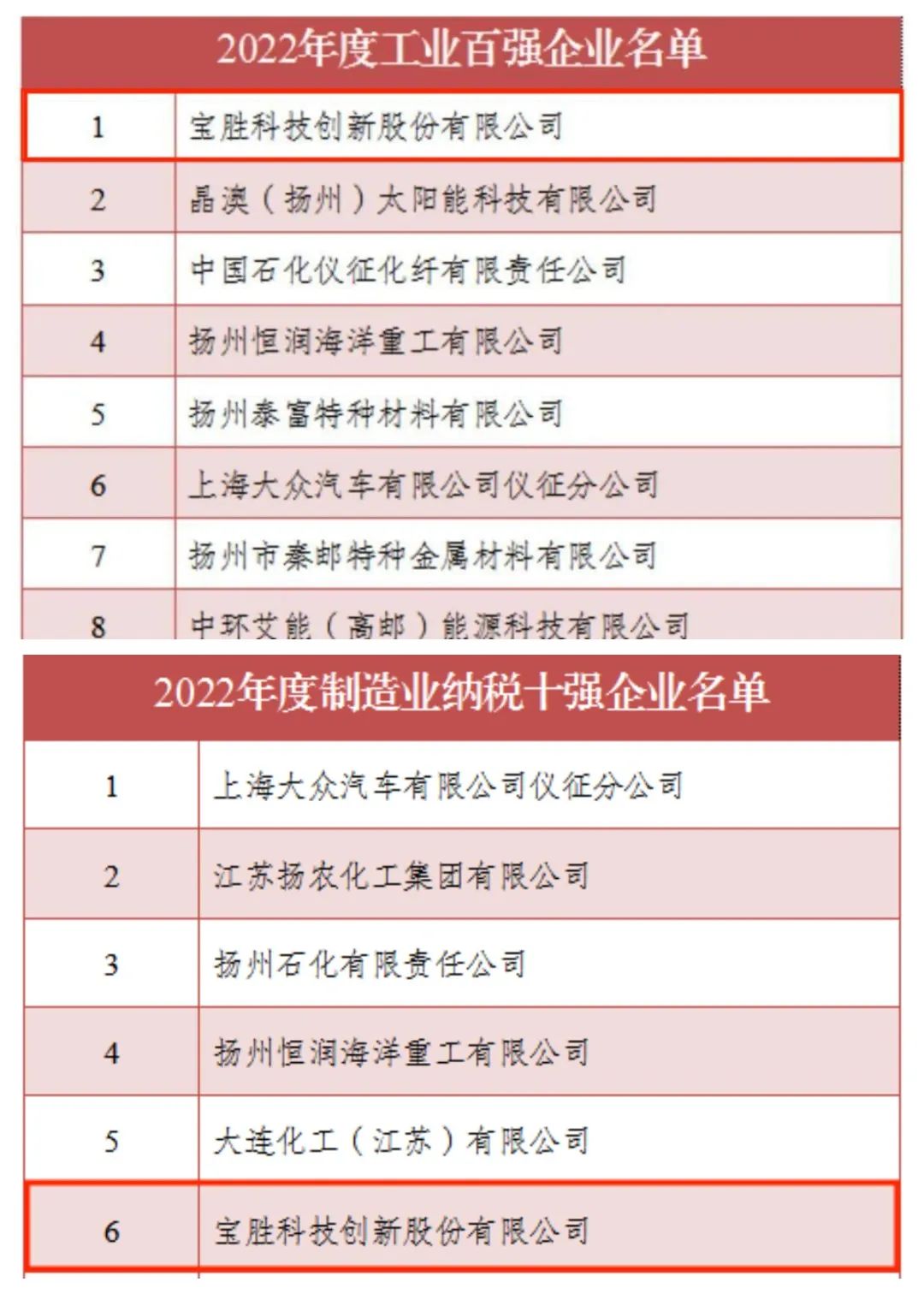 近日,扬州市政府发布了《关于2022年度全市工业企业高质量发展结果的通报》,宝胜股份入选“2022年度制造业纳税十强企业”“2022年度工业百强企业”两项榜单,且在百强企业中位居榜首。过去一年,宝胜股份围绕创新驱动战略,紧跟…