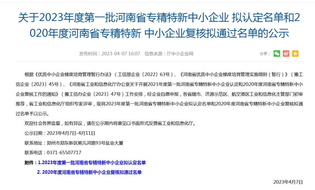 近日,根据《优质中小企业梯度培育管理暂行办法》(工信部企业〔2022〕63号)、《河南省优质中小企业梯度培育管理实施细则(暂行)》(豫工信企业〔2023〕45号)、《河南省工业和信息化厅办公室关于开展2023年度第一批河南省专精…