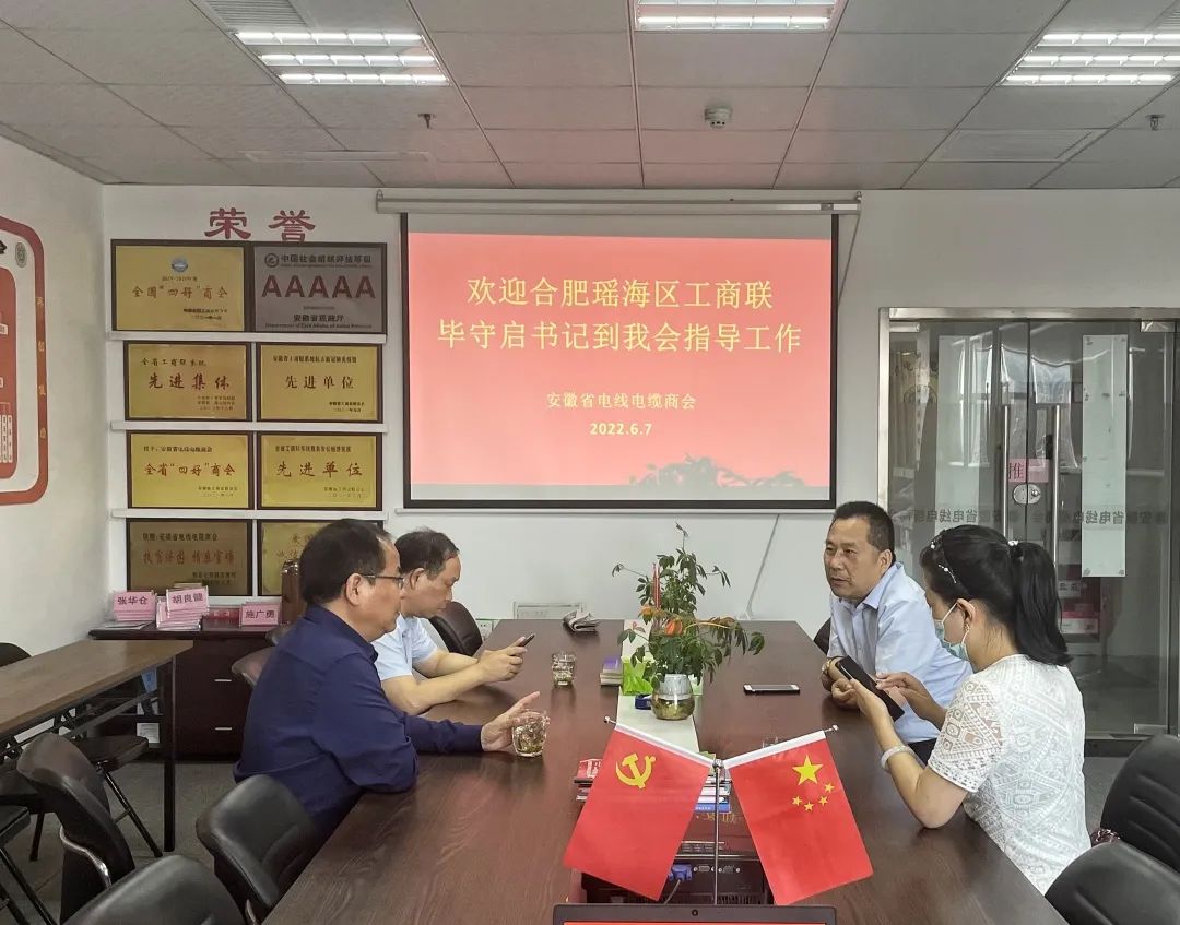 6月7日下午,合肥市瑶海区委统战部副部长、区工商联党组书记毕守启一行到安徽电线电缆商会考察。秘书长热情的接待了他们。座谈会上,秘书长简要介绍了商会的情况及发展。他说,商会成立于2005年5月,已风雨兼程17载,在省工商联…