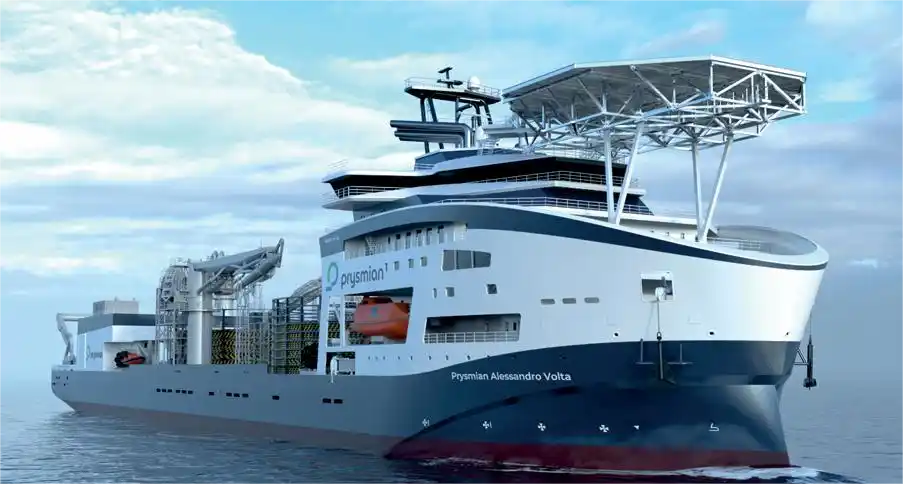 近日,意大利电缆巨头普睿司曼(Prysmian)投资建造的新型电缆铺设船(CLV)“Prysmian Alessandro Volta”号已完成船体组装,即将下水。该船全长192.8米,宽34米,配备三个电缆转盘,总装载量达19000吨,能在水深达1500米的海域…