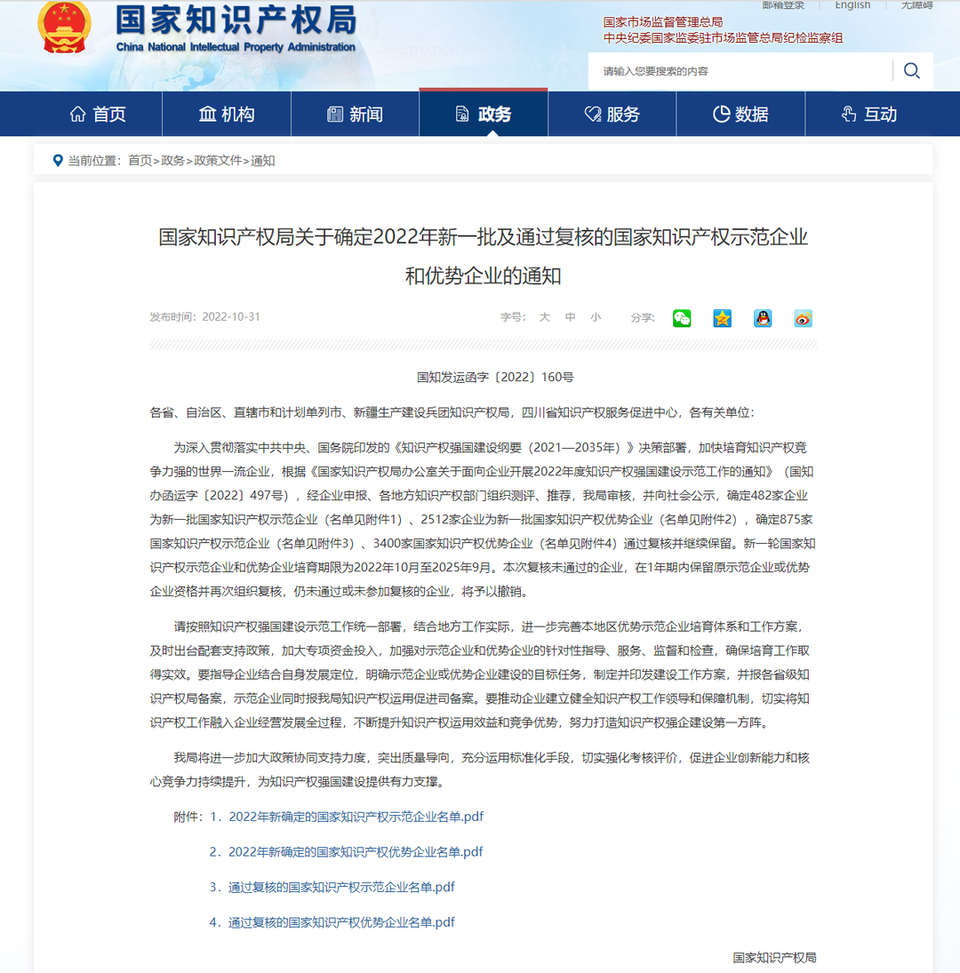 近日,国家知识产权局公示了2019年及以前认定的国家知识产权优势企业的复核结果,深圳市沃尔核材股份有限公司凭借在知识产权创造、运用、管理及保护等多重优势,再次获得这一“国字号”认定,标志着公司知识产权工作再攀新高。国…